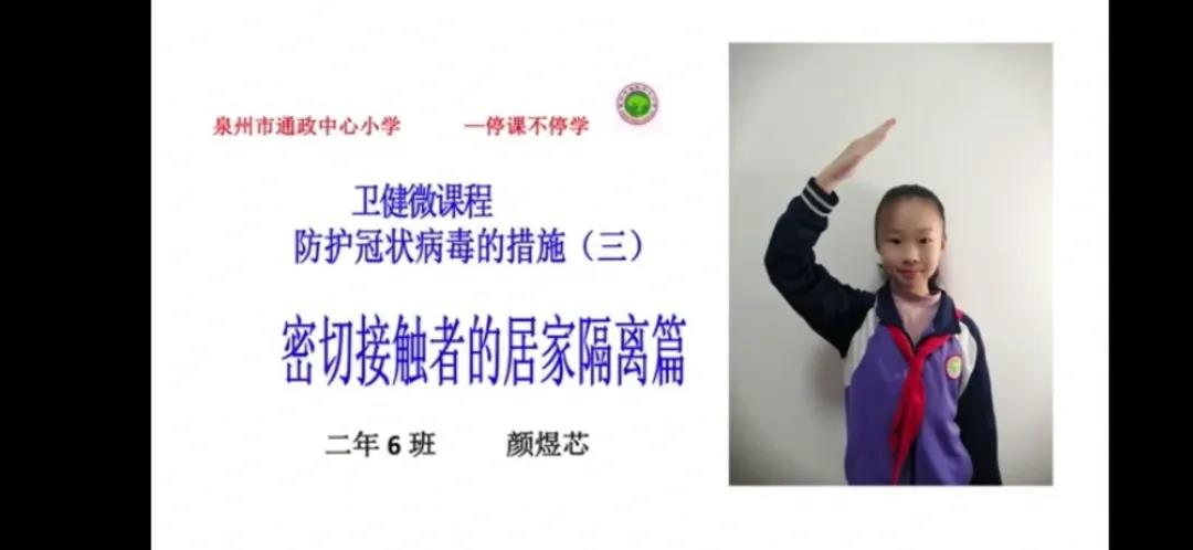 月10日(正月十七),泉州市通政中心小学开启“停课不停学”模式时,便将“卫健微课程”列入居家学习指导课程表,由孩子与家长自愿制作视频,课间休息时,发送到班级群里,宣讲防疫小知识。