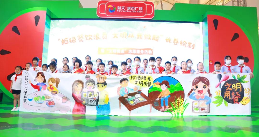 文明风8月25日讯(通讯员 黄凯杰 施远圻 苏玲玲)为贯彻落实习近平总书记对制止餐饮浪费行为的重要指示精神,大力弘扬勤俭节约传统美德,倡导健康文明的生活方式和消费理念,8月24日,由鲤城团区委、区少工委主办的“拒绝餐饮浪费 文明从我做起”长卷绘制暨“文明餐桌”志愿服务活动在新天城市广场举行。来自辖区6所小学的60多名少先队员共同绘就16米长的“文明用餐图”,并在老师的带领下走进商场餐厅,开展文明餐桌宣传活动。
