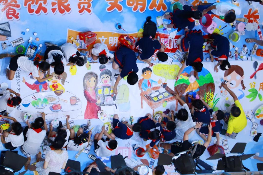 活动现场,两张总长18米的画纸铺展开来,孩子们现场尽情描绘。经过半个多小时的创作,一个个文明就餐的场景,跃然纸上,“珍惜粮食”“光盘行动”等文明标语十分醒目。