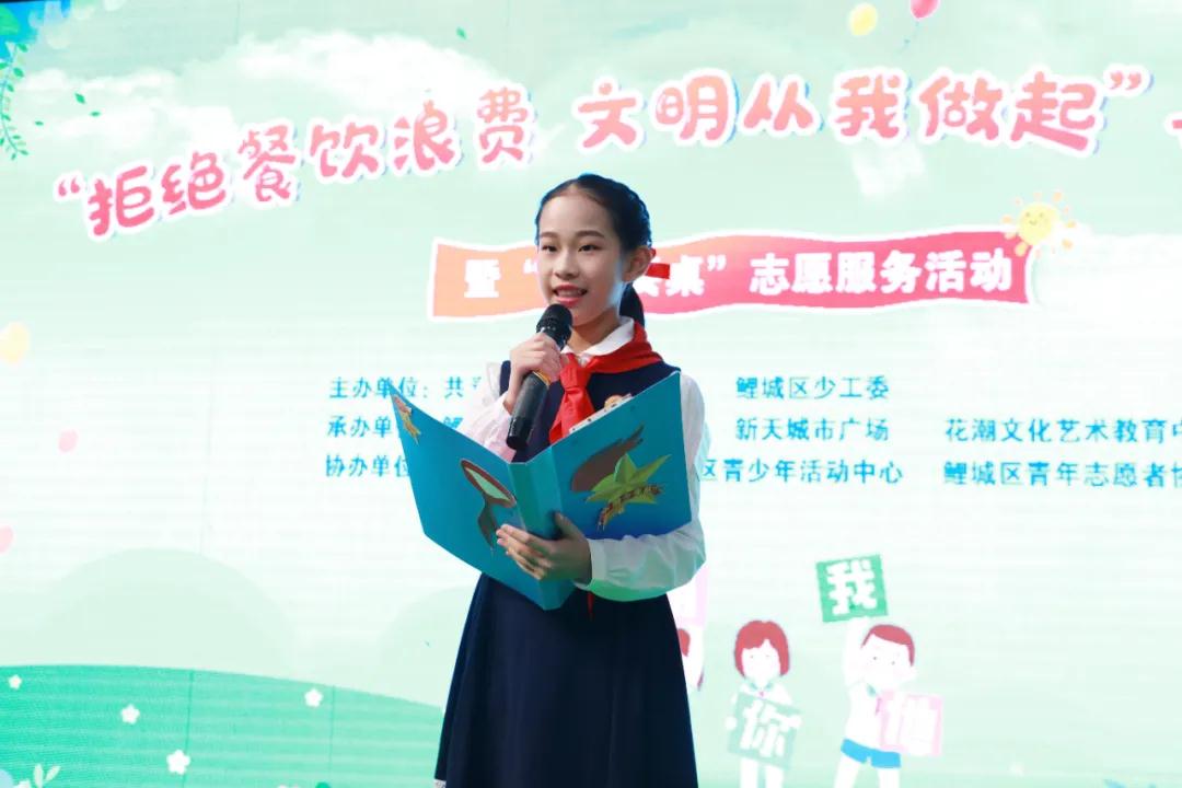 随后,来自新华中心小学的少先队员代表林婧琳同学上台宣读倡议书,呼吁少先队员们树立“拒绝餐桌浪费,文明从我做起”的意识,为“文明餐桌”的推广贡献自己的一份力量,并向广大市民发出倡导:卫生用餐、节俭用餐、绿色用餐、文明用餐!