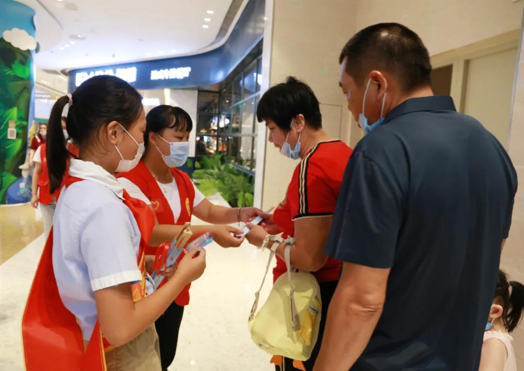 活动一开始,3名少先队员率先登上舞台,齐声朗诵《厉行节约,反对浪费》,清脆的童声在商场大厅回荡。
